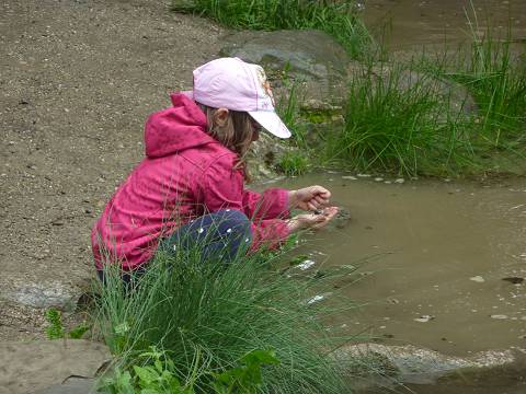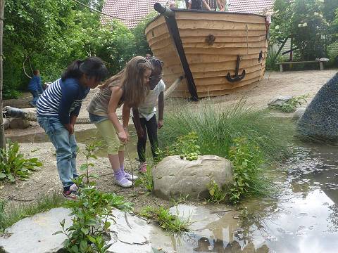 Teich in öffentlichen Anlagen als Natur-Erlebnisbereich für Kinder