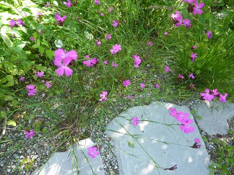 Kartäusernelke am Wegrand des naturnah angelegten Gartens