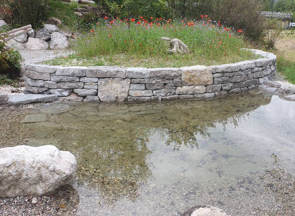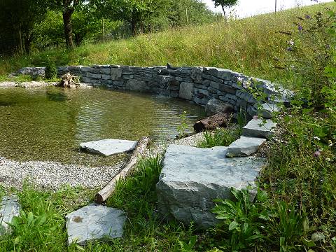 Artenreiche Blumenwiesen, einheimische Gehölze, Trockenmauern oder klassische Feuchtbiotope sind typische Elemente von naturnahen