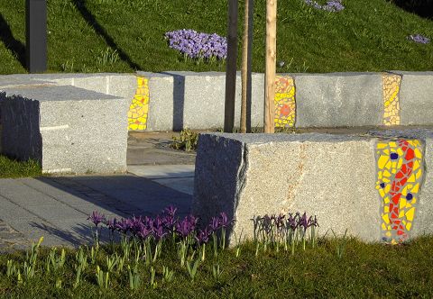 Natursteinsitzblöcke im Frühjahr