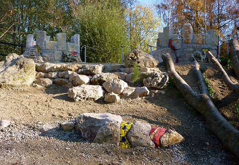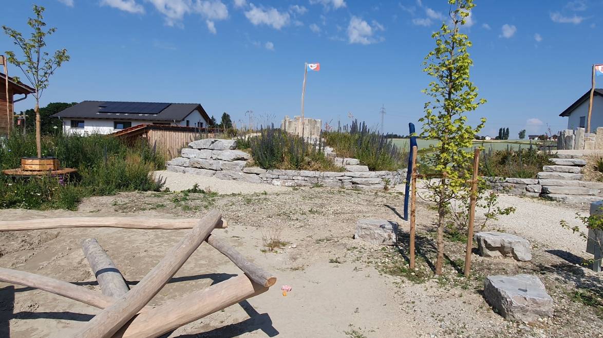 Quartierspark „Grüne Mitte“ Vilsbiburg mit Kletterbereich, Burgzinnen und Sitzbereich